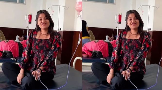 अस्पताल के बेड पर ड्रिप लगवाते हुए लड़की ने बनाई रील
