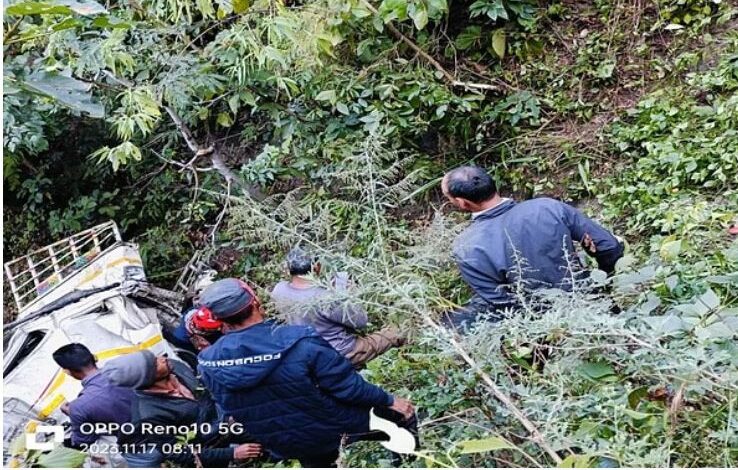 क्षेत्र के प्रकाश रुवाली और रंजीत मटियाली ने बताया कि शुक्रवार की सुबह 8 बजे एक वाहन 500 मीटर गहरी खाई में जा गिरा। उन्होंने बताया कि वाहन में 11 यात्री सवार थे। मृतकों में धनी देवी (38) पत्नी रमेश चंद्र पनेरू निवासी डालकन्या, तुलसी प्रसाद (38) पुत्र रमेश चंद्र, रमा देवी (30) पत्नी तुलसी प्रसाद, तरुण पनेरू (5) पुत्र तुलसी प्रसाद, देवीदत्त (51) पुत्र ईश्वरी दत्त, नरेश पनेरू (26) पुत्र पूरन पनेरू, राजेंद्र पनेरू (5) पुत्र तुलसी प्रसाद, शिवराज सिंह (25) पुत्र कुंवर सिंह, नरेंद्र सिंह पुत्र कुंवर सिंह की मौत हो चुकी है।