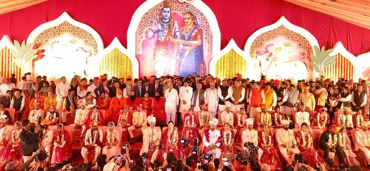 नवविवाहित जोड़ों, जिनमें मुख्यमंत्री के बेटे और बहू भी शामिल थे, को प्रमुख हिंदू संतों और धर्मगुरुओं से आशीर्वाद मिला। इनमें योग गुरु बाबा रामदेव, हिंदू राष्ट्र समर्थक और धर्मोपदेशक पंडित धीरेंद्र कृष्ण शास्त्री ‘बागेश्वर धाम सरकार’ और अखाड़ा परिषद के प्रमुख महंत रवींद्र पुरी महाराज शामिल थे।