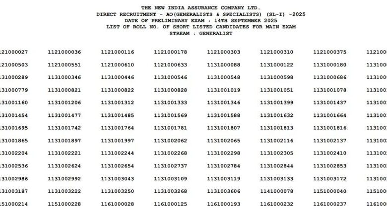 न्यू इंडिया एश्योरेंस कंपनी लिमिटेड (NIACL) की ओर से आज यानी 09 अक्टूबर को NIACL AO Result 2025 जनरलिस्ट और स्पेशलिस्ट भर्ती परीक्षा का रिजल्ट जारी कर दिया गया है। बता दें, यह परीक्षा 14 सितंबर, 2025 को आयोजित कराई गई थी। जो उम्मीदवार इस भर्ती परीक्षा में शामिल हुए थे, अब वे अपना रिजल्ट देख और डाउनलोड कर सकते हैं। रिजल्ट आधिकारिक वेबसाइट पर डाउनलोड करने के लिए उपलब्ध है। उम्मीदवार एनआईएसीएल की आधिकारिक वेबसाइट www.newindia.co.in पर जाकर पीडीएफ फॉर्मेट में अपना रिजल्ट डाउनलोड कर सकते हैं।
