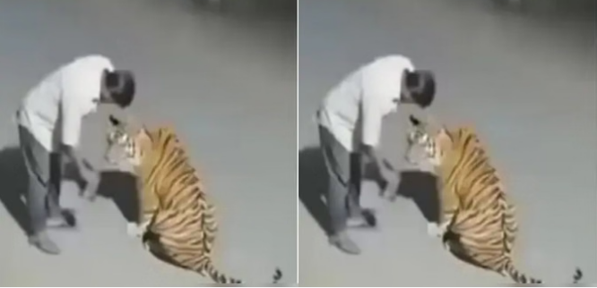 नशे में धुत शख्स ने बाघ को समझ लिया कुत्ता