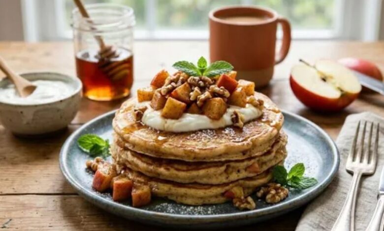 नाश्ते में खाने के लिए कुछ हेल्दी ढूंढ रहे हैं? मिनटों में तैयार करें एप्पल योगर्ट पैनकेक