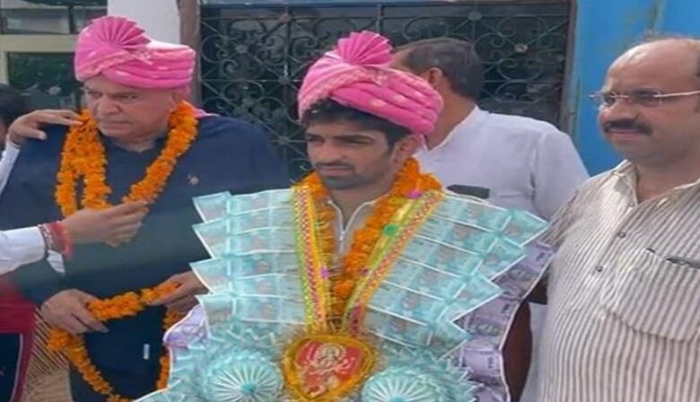 बहादुरगढ़ पहुंचने पर अमन सहरावत का जोरदार स्वागत