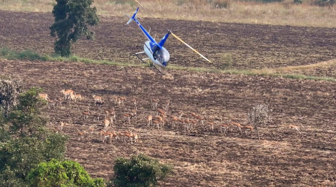 कृष्णमृग और नीलगायों से फसलें बचाने में हेलीकॉप्टर और बोमा तकनीक कारगर साबित हुई। अभियान में दक्षिण अफ्रीका की कंजरवेशन सॉल्यूशंस कंपनी के 15 विशेषज्ञों ने भाग लिया और प्रदेश की वन टीम को प्रशिक्षित किया। रॉबिन्सन-44 हेलीकॉप्टर से पहले खेतों और खुले इलाकों का सर्वे किया गया, फिर रणनीतिक रूप से “बोमा” (घास और जाल से बनी फनल आकार की बाड़) लगाकर जानवरों को सुरक्षित दिशा में ले जाया गया। यह पूरी प्रक्रिया वन्यजीवों को डर या चोट पहुंचाए बिना पूरी की गई।