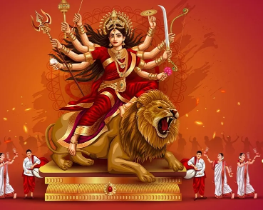 मां दुर्गा की प्रतिमा स्थापित करें।