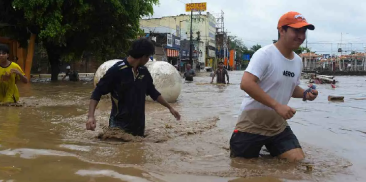 मेक्सिको के पॉज रिका में कैजोन्स नदी पूरे उफान पर है। नदी का पानी शहरों में घुस गया। पानी का बहाव इतनी तेज था कि कई कारें इसमें बह गईं और इमारतें धराशायी हो गईं।
