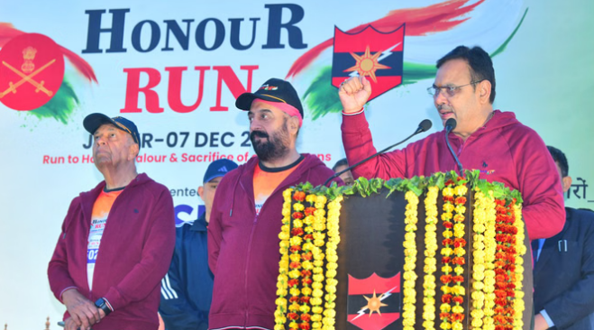 रविवार सुबह जयपुर में सेना की दक्षिण पश्चिम कमान द्वारा पूर्व सैनिकों की वीरता और बलिदान को नमन करते हुए आयोजित ‘ऑनर रन मैराथन’ का भव्य आगाज मुख्यमंत्री भजनलाल शर्मा ने किया। अल्बर्ट हॉल से मैराथन को फ्लैग ऑफ करते हुए सीएम ने कहा कि यह आयोजन शहीदों और वीर सैनिकों के सम्मान का प्रतीक है, और युवा पीढ़ी को इससे प्रेरणा लेनी चाहिए। उन्होंने बताया कि सेना के साहस, अनुशासन और बलिदान के कारण ही देश सुरक्षित है और हर नागरिक का कर्तव्य है कि वह सेना के प्रति सम्मान और कृतज्ञता भाव रखे।