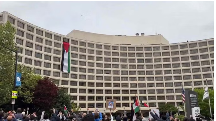हिल्टन होटल में व्हाइट हाउस के पत्रकारों का रात्रिभोज होना था। यहां जो बाइडन के कार्यक्रम को संबोधित करने की उम्मीद थी। कार्यक्रम से पहले यहां फलस्तीनियों का समर्थन कर रहे लोग पहुंच गए।