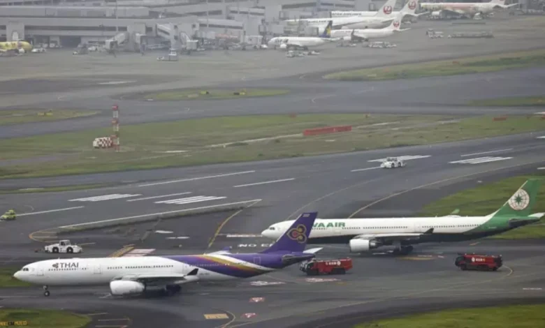 जापानी मीडिया रिपोर्टों में कहा गया है कि बैंकॉक की ओर जाने वाले एक थाई एयरवेज इंटरनेशनल जेट हनेडा हवाई अड्डे पर ताइपे की ओर जाने वाले ईवा एयरवेज के विमान से टकरा गया। इस घटना के बाद रनवे को बंद कर दिया गया।