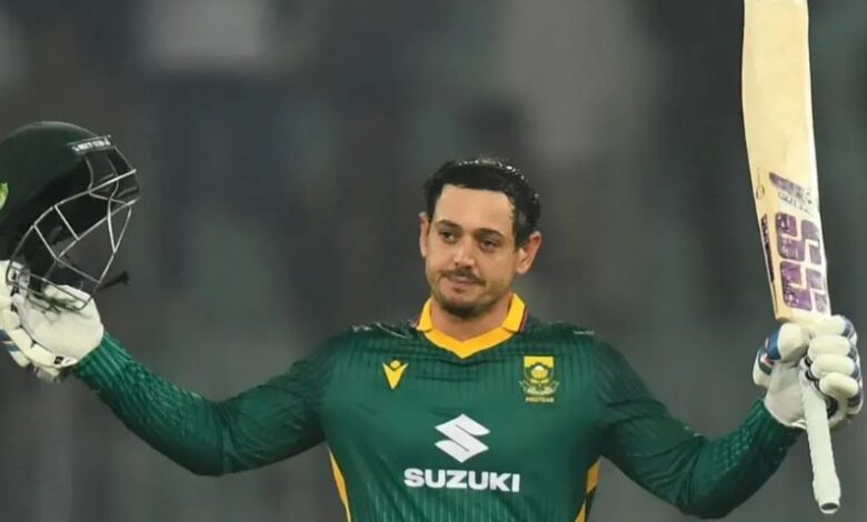फैसलाबाद में दूसरे ODI में लक्ष्य का पीछा करते हुए सलामी बल्लेबाज क्विंटन ने 99 गेंद पर शानदार शतक ठोका। यह उनके वनडे करियर का 22वां शतक रहा। वह साउथ अफ्रीका के लिए सबसे ज्यादा वनडे शतक जड़ने वाले तीसरे खिलाड़ी बने। उन्होंने हर्शल गिब्स को पीछे छोड़ा।