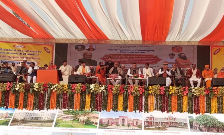 केंद्रीय रक्षा मंत्री राजनाथ सिंह, मध्य प्रदेश के मुख्यमंत्री मोहन यादव और मुख्यमंत्री पुष्कर सिंह धामी के साथ स्वामी दर्शनानंद गुरुकुल महाविद्यालय में ‘गुरुकुलम एवं आचार्यकुलम’ के शिलान्यास समारोह में शामिल होने पहुंचे। रक्षामंत्री पतंजलि गुरुकुलम् की आधारशिला रखेंगे।