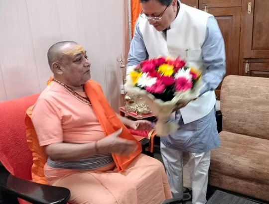 हरिद्वार: सीएम धामी ने धर्मनगरी पहुंचकर की जगद्गुरु शंकराचार्य से मुलाकात