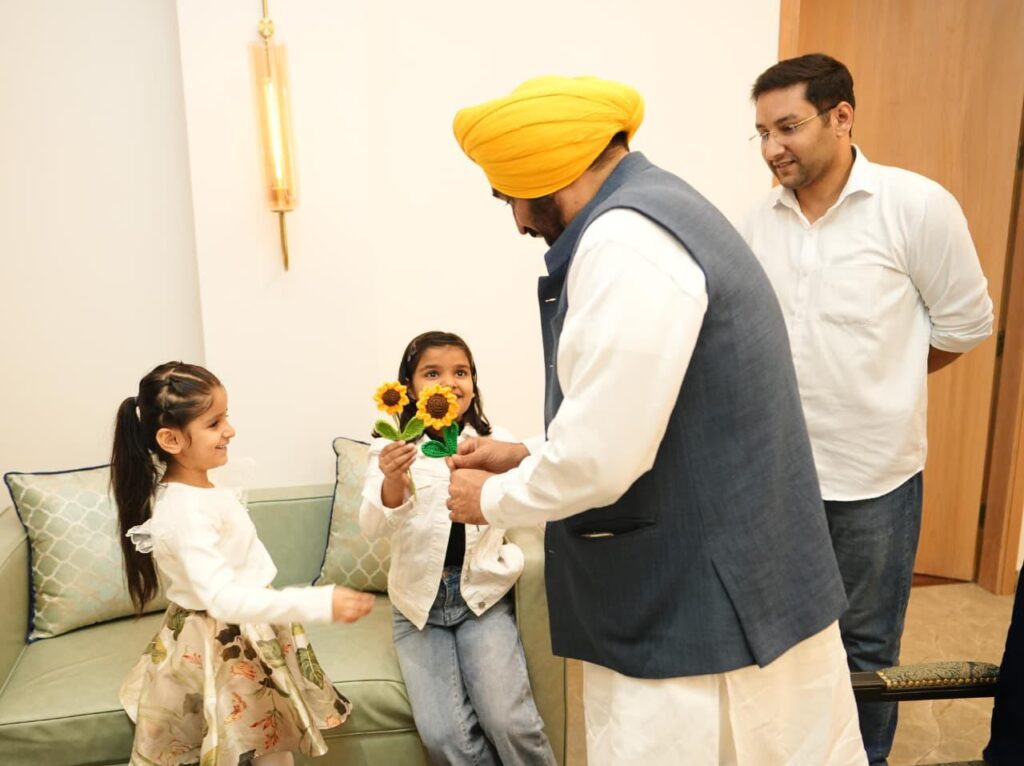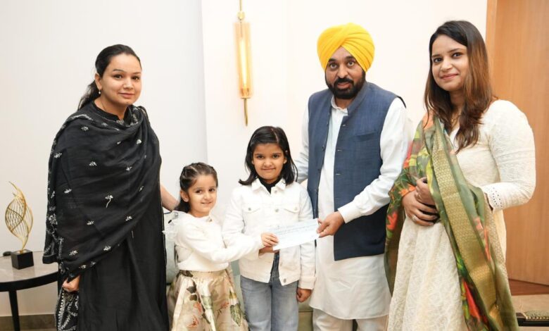 अमृतसर की मोक्ष सोई (7 वर्ष) और श्रीनिका शर्मा (6 वर्ष) ने अपनी पहली प्रदर्शनी “क्रोशे ऑफ़ काइंडनेस” से प्राप्त पूरी राशि पंजाब के बाढ़ पीड़ितों की मदद के लिए मुख्यमंत्री भगवंत मान को दान के तौर पर दी।इन नन्हीं बच्चियों की इस सोच को मुख्यमंत्री मान ने सराहा।