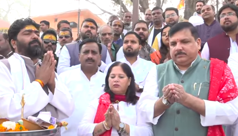 अयोध्या में सरयू तट पर AAP नेता और राज्यसभा सांसद संजय सिंह ने की सरयू आरती
