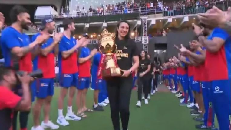 आरसीबी की मेंस टीम ने एम चिन्नास्वामी स्टेडियम में आरसीबी अनबॉक्स इवेंट के दौरान स्मृति मंधाना (Smriti Mandhana) की ब्रिगेड का जोरदार स्वागत किया। डब्ल्यूपीएल 2024 का खिताब जीतने वाली आरसीबी टीम को पुरुष आरसीबी टीम ने गार्ड ऑफ ऑनर दिया। उनका वीडियो तेजी से सोशल मीडिया पर वायरल हो रहा है, जिसे फैंस खूब पसंद कर रहे हैं।